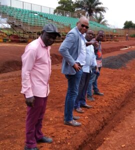 La fondation Niat à l’œuvre… Dans sa posture de Secrétaire Exécutif de la Fondation NIAT, le maire de Banganté a super- visé les travaux de foration le 11 Juin dernier au stade municipal de la ville. Cet ouvrage hydraulique en cours de réalisation, don de la Fondation NIAT, servira à la pose imminente ainsi qu’à l’entretien du gazon sur l’aire de jeux. D’ail- leurs, les travaux d’assainisse- ment pour la pose du gazon sont en train d’être effectués, comme a pu le constater le maire Eric NIAT qui avait à ses côtés le Délégué départementaux des Sports et de l’Education Physique et celui des Travaux Publics du Ndé, ainsi que quelques amoureux du sport. La fondation Niat qui multiplie les actions un peu partout en ville pour soulager les souffrances des populations, à l’image des points d’eau construit à l’hôpital de district, derrière la place des fêtes, au Marché central et dans plusieurs quartiers.